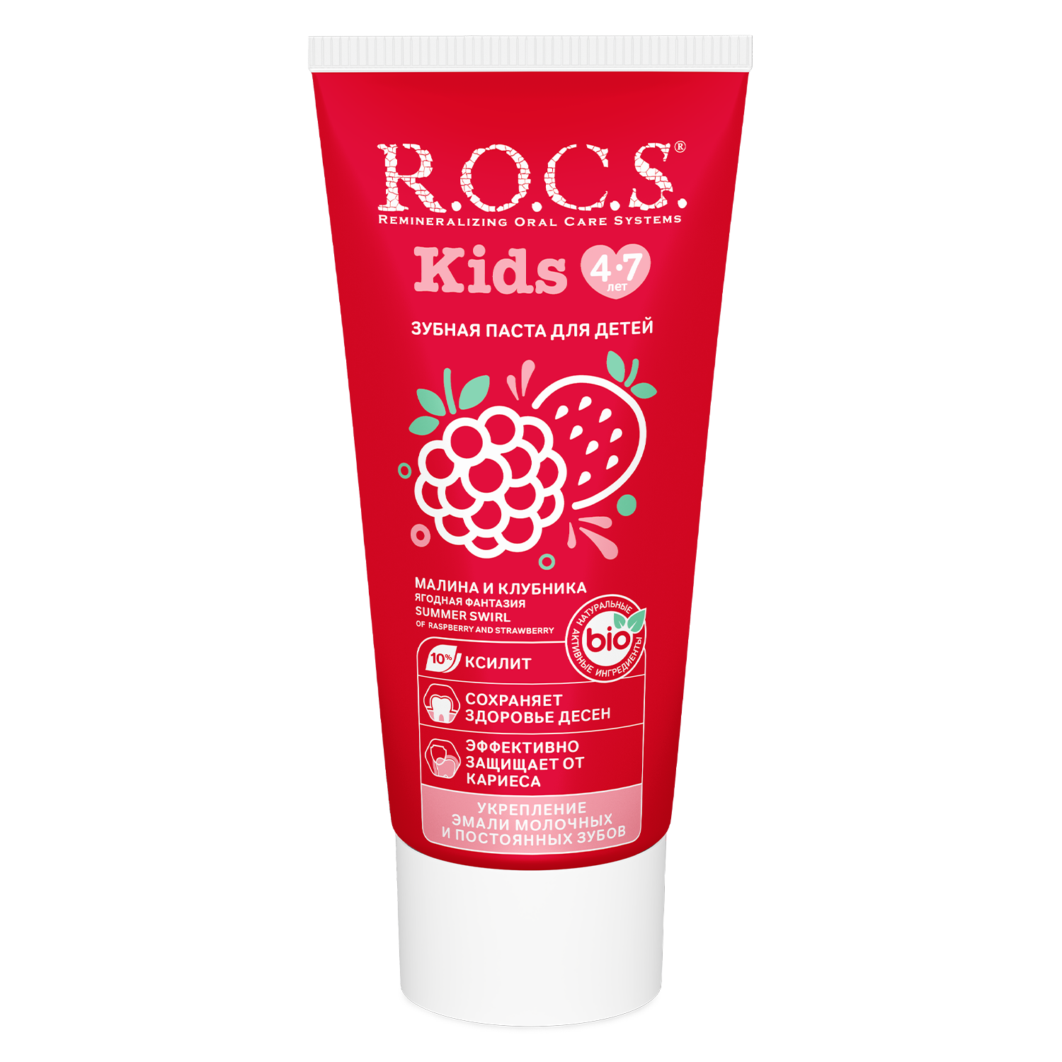 ROCS Kids Toothpaste مُصمم خصيصًا للأطفال الذين تتراوح أعمارهم بين 4 و 7 سنوات، مما يوفر تنظيفًا لطيفًا وفعالًا وحماية للأسنان النامية. يجمع معجون الأسنان هذا بين النكهات اللذيذة للتوت والفراولة لتشجيع عادات تنظيف الأسنان المنتظمة وتعزيز صحة الفم المثالية.
