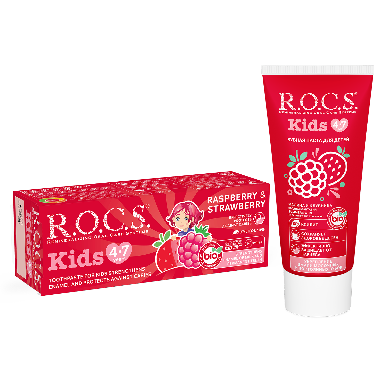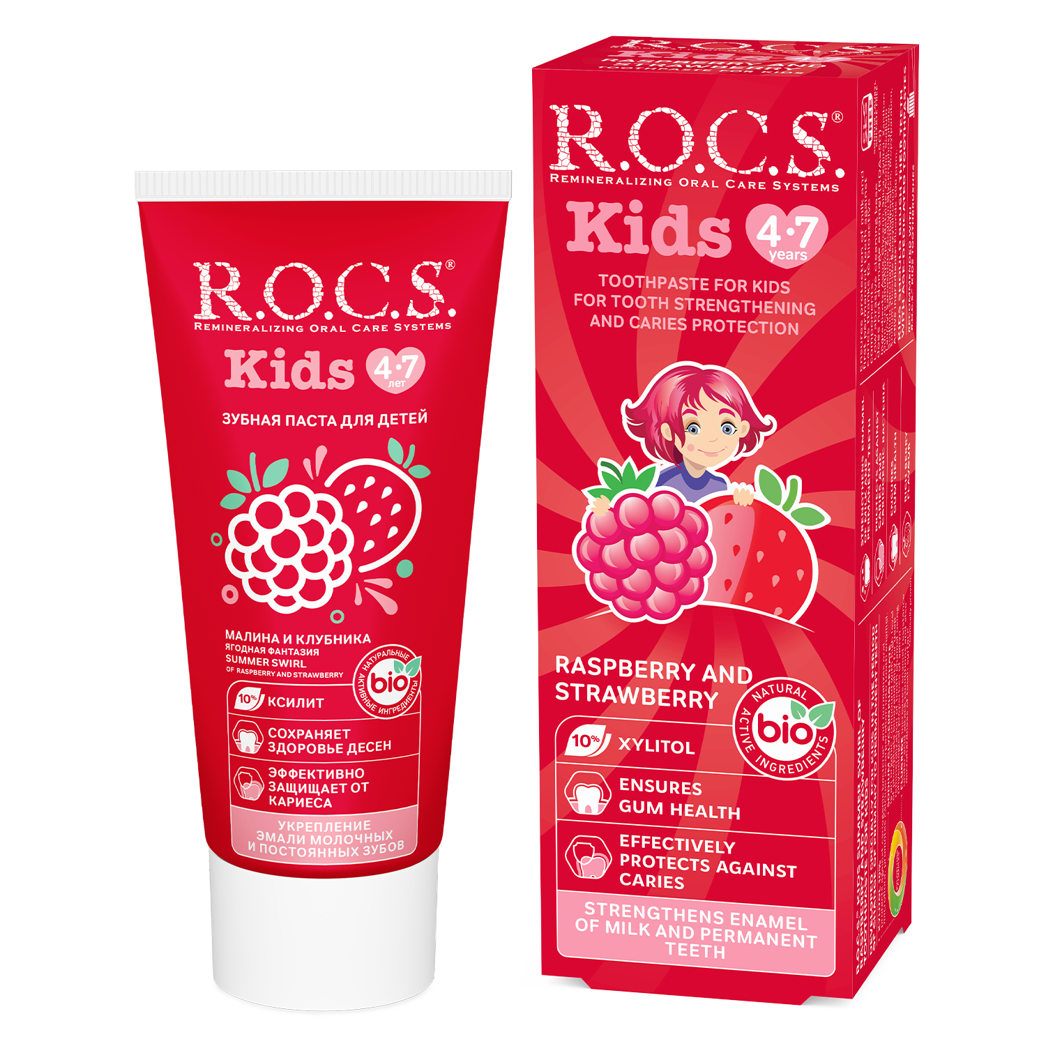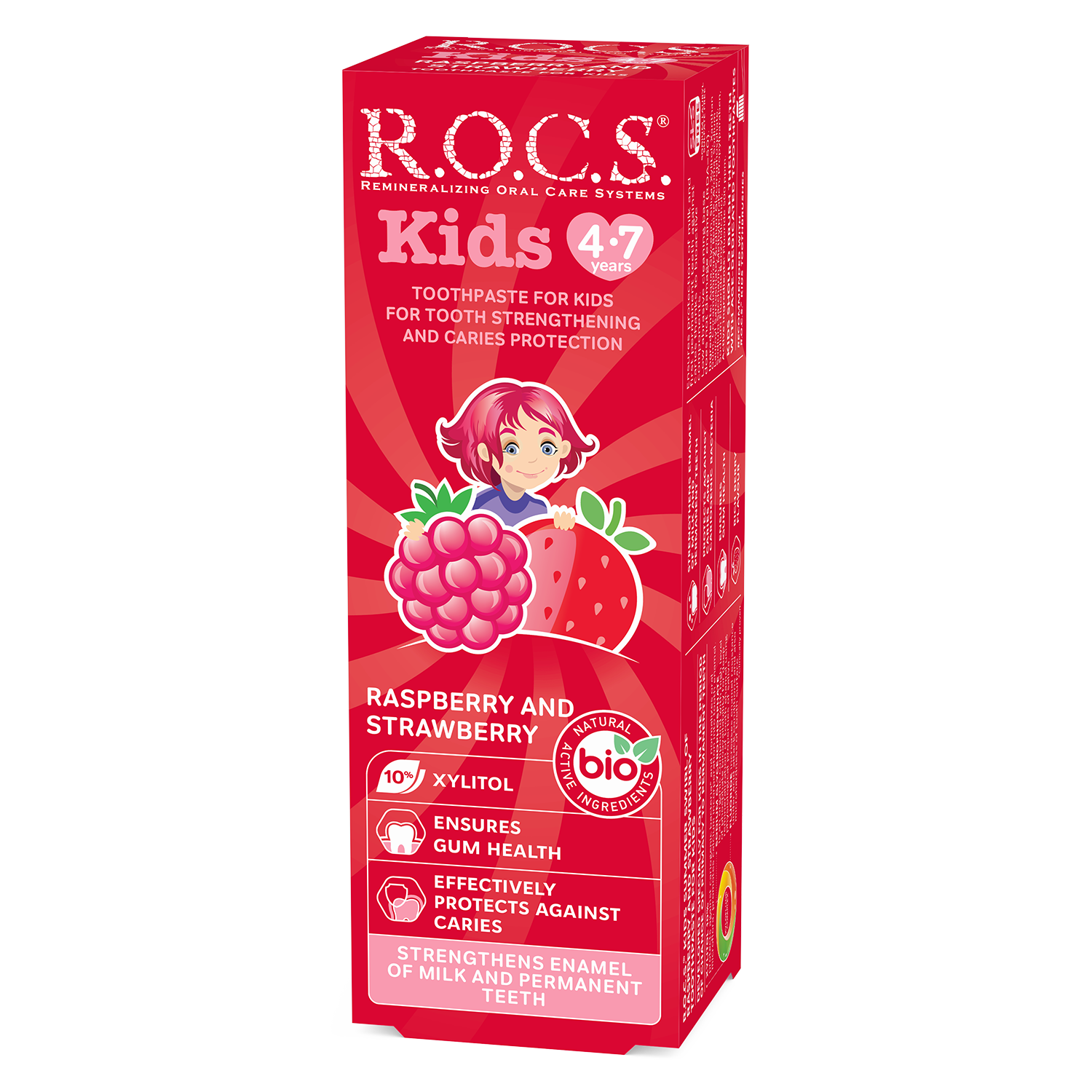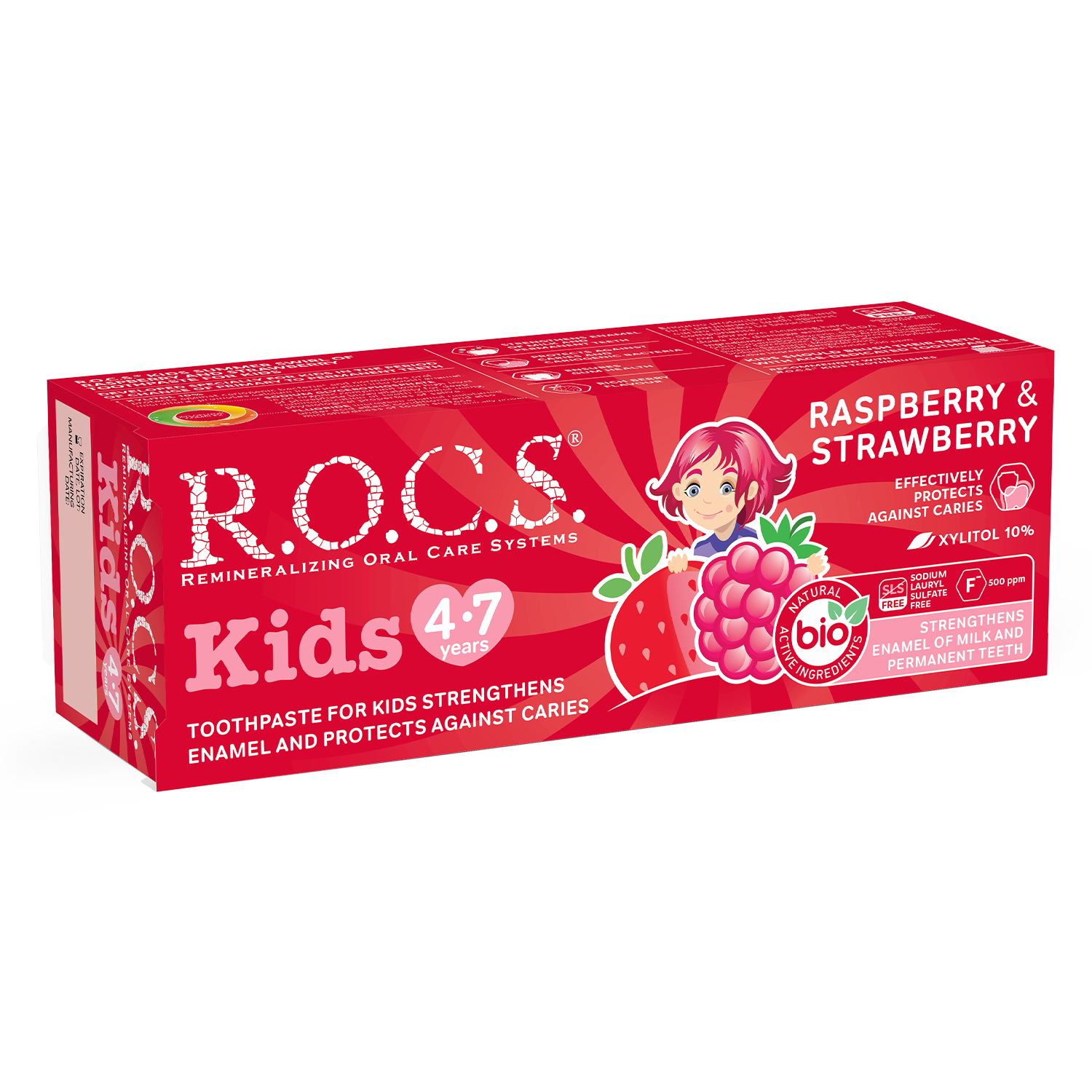 ROCS Kids Toothpaste is specially formulated for children aged 4-7 years, providing gentle yet effective cleaning and protection for developing teeth. This toothpaste combines the delicious flavors of raspberry and strawberry to encourage regular brushing habits and promote optimal oral health.