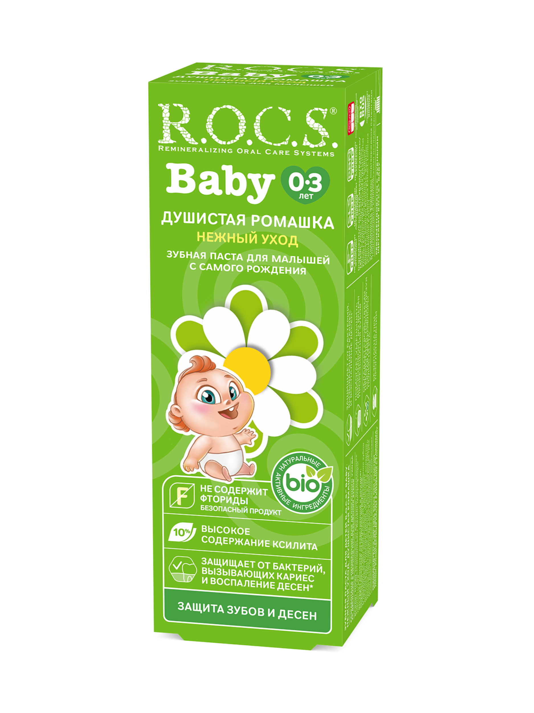 معجون أسنان ROCS Baby Camomile مصمم خصيصًا للرضع والأطفال الذين تتراوح أعمارهم بين 0-3 سنوات لتنظيف أسنانهم الحساسة بلطف وفعالية. يوفر هذا المعجون حماية أساسية ضد التسوس مع تهدئة اللثة بخلاصة البابونج الطبيعية. يعزز عادات نظافة الفم الصحية منذ ظهور الأسنان الأولى.