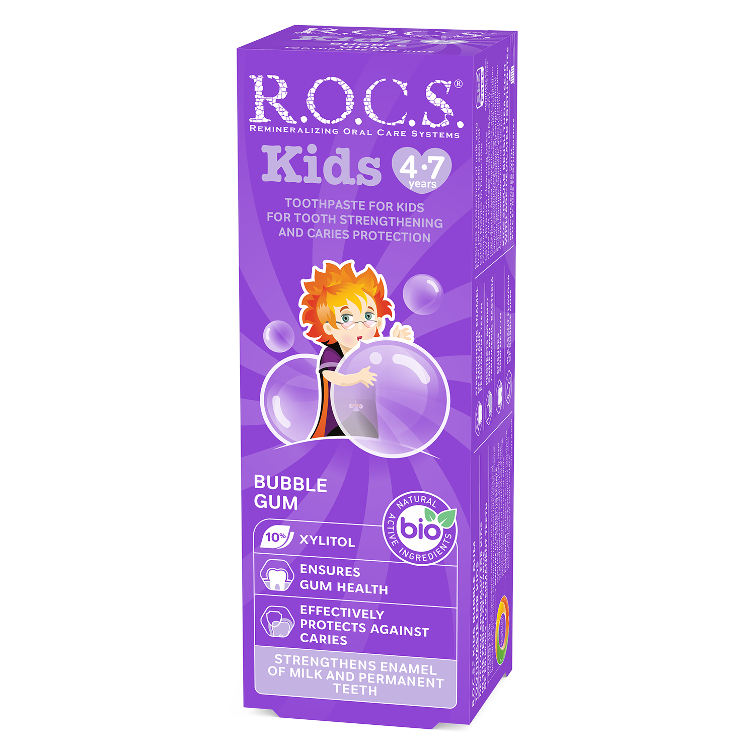 ROCS Kids Fruity Cone Toothpaste is specially formulated for children aged 3-7 years to provide gentle yet effective cleaning and protection for developing teeth. This toothpaste helps strengthen enamel and protect against cavities, promoting healthy oral hygiene habits from a young age.